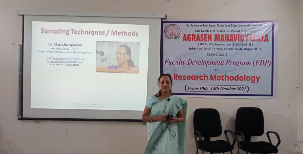 अग्रसेन महाविद्यालय में एफडीपी का तीसरा दिन     “सही डाटा कलेक्शन से बनती है शोध की विश्वसनीयता”