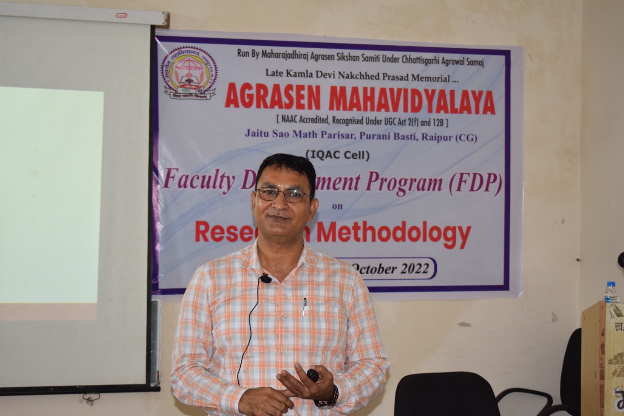 अग्रसेन महाविद्यालय में एफडीपी का चौथा दिन--     “शोध की प्रकृति से तय होती है डाटा एनालिसिस की विधि”